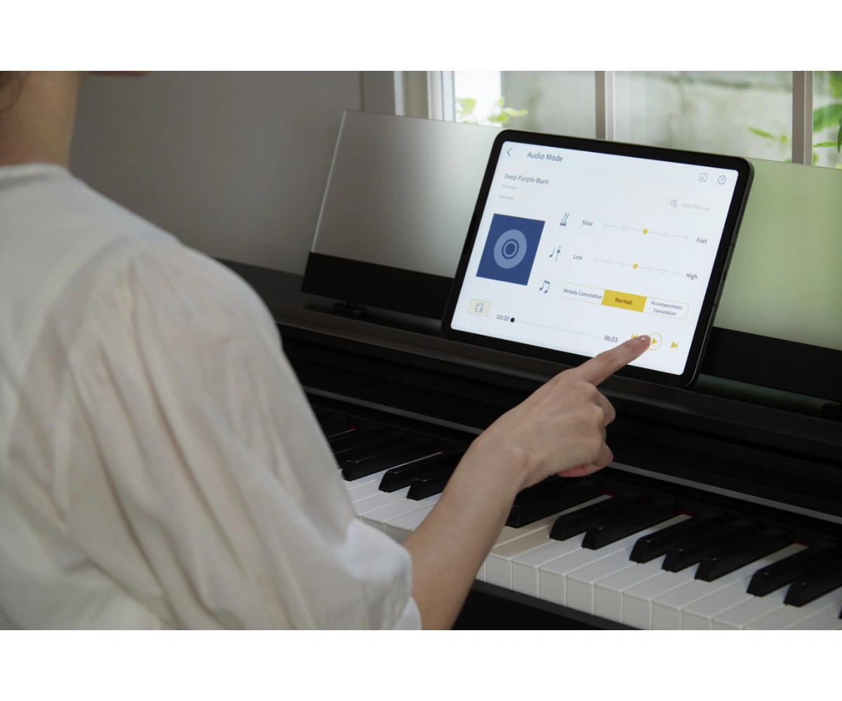 Wnętrze AP-S200 skrywa zaawansowany procesor dźwięku AiR Sound Source, który z niezwykłą precyzją odwzorowuje bogactwo rezonansu strun. Dzięki technologii bezstratnej kompresji audio (Lossless Audio Compression), sygnał pozostaje krystalicznie czysty, oddając pełną dynamikę gry – od subtelnego pianissimo po potężne fortissimo. System Mechanical Sound dba o najdrobniejsze detale, symulując fizyczną pracę mechanizmu młoteczkowego, co nadaje brzmieniu niebywałego realizmu.