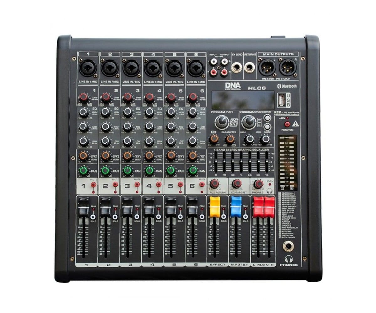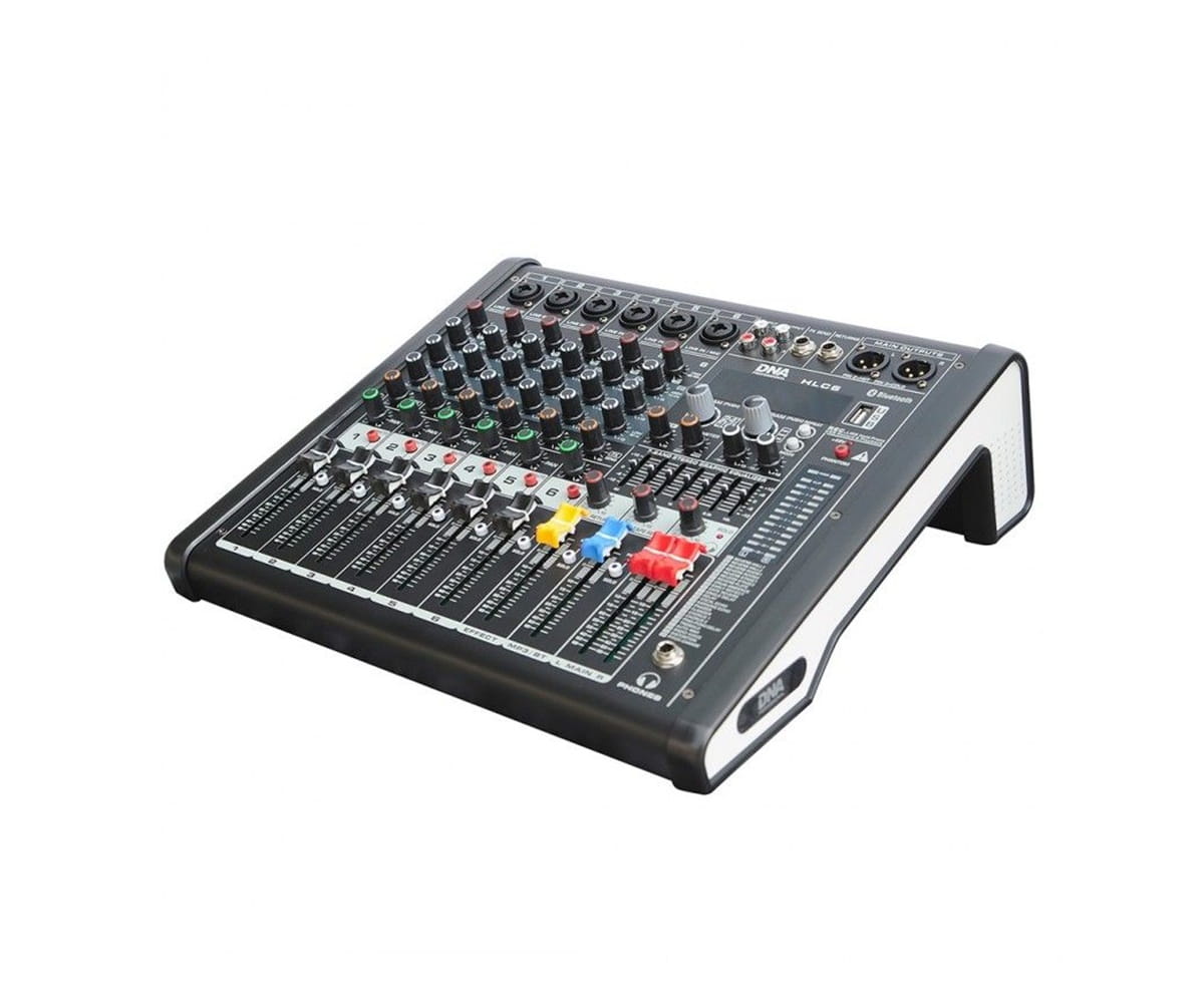 DNA HLC 6 to analogowy mikser audio, wyposażony w sześć kanałów wejściowych, wysokiej klasy przedwzmacniacze, port USB z funkcją MP3 oraz standard bezprzewodowej komunikacji Bluetooth. Sprzęt doskonale sprawdza się jako mikser sceniczny podczas niewielkich koncertów i występów estradowych, na salach prób, a także w domowym studio nagrań.
