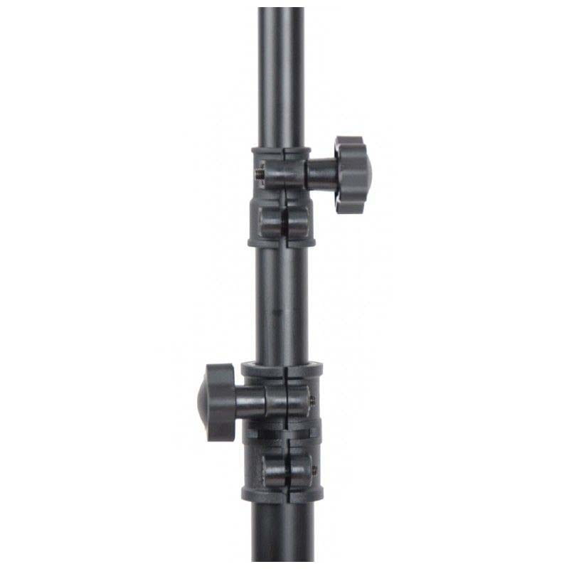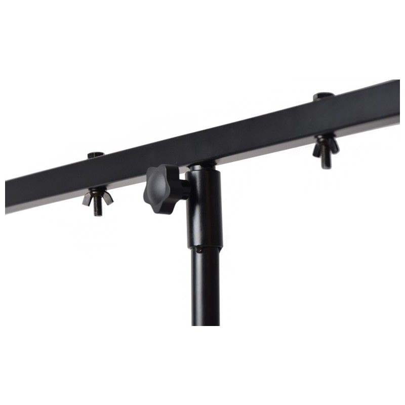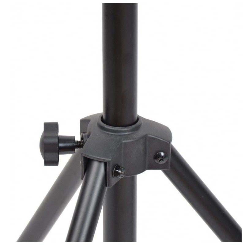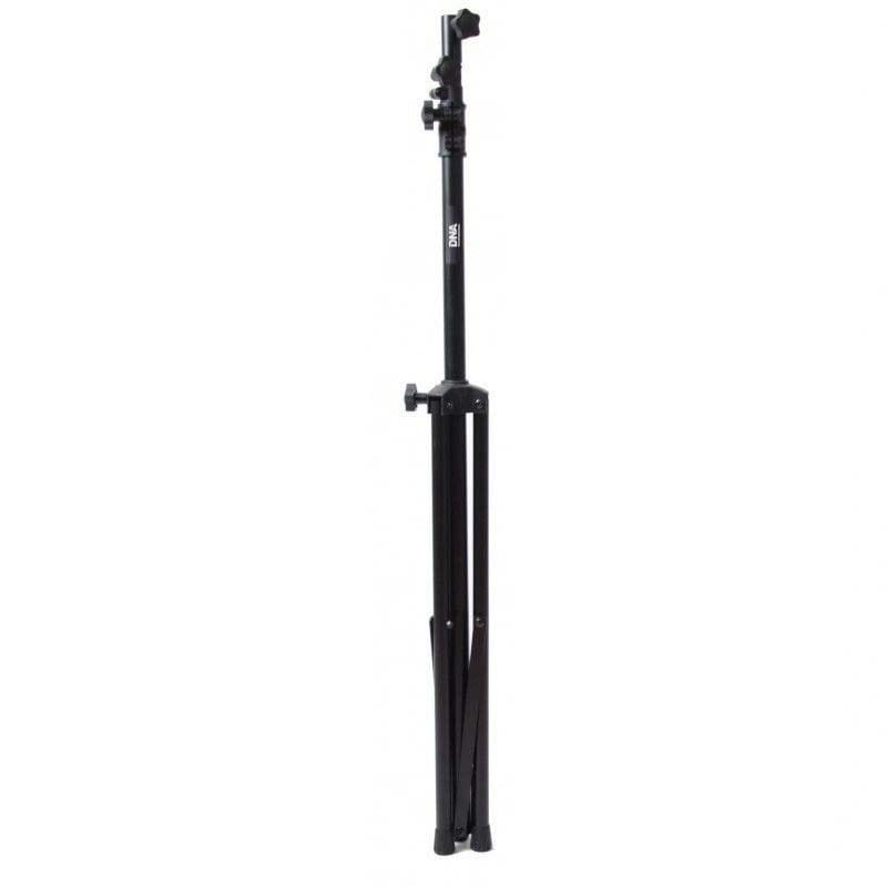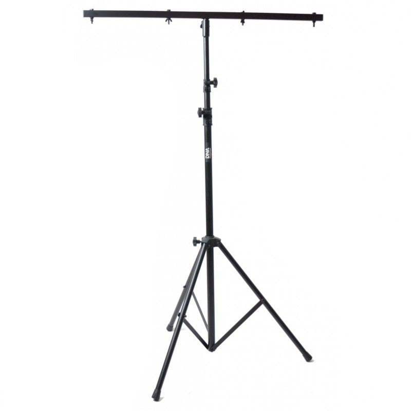 Mobilny statyw owietleniowy z poprzeczkąDNA LS1 to statyw oświetleniowy z belką, wyposażony w szeroką poprzeczkę o długości 92 cm, na której można zamontować do ośmiu urządzeń różnego typu. Stojak posiada płynną regulację wysokości w zakresie od 124 do 265 cm. Idealnie sprawdza się na różnego typu parkietach, niewielkich scenach, w czasie 18nastek, studniówek, a także zorganizowanych prywatek. Jest bardzo mobilny, a dzięki udźwigowi do 20 kg można powiesić na nim różnego typu reflektory, efekty świetlne, kompaktowe skanery laserowe, stroboskopy, a nawet lekkie hazery i wytwornice dymu. Idealna oprawa oświetleniowaStatyw oświetleniowy DNA LS1 to idealne rozwiązanie dla mobilnych DJów, zespołów muzycznych oraz firm eventowych, ponieważ umożliwia montaż i demontaż w krótkim czasie. Można go również stosować w niewielkich instalacjach stałych, np. w szkołach, przedszkolach lub innych ośrodkach, do podwieszenia oświetlaczy czy różnego rodzaju rzutników. To również konkurencyjny cenowo statyw oświetleniowy dostępny w najlepszej cenie od sklepu muzycznego Music Express! Specyfikacja technicznaMateriał stalKolor czarny powierzchnia powlekana proszkowoIlość rozszerzeń 2Montaż do 8 punktów świetlnych góra i dółNóżki 3 stabilne, z gumowymi nakładkamiMaks. rozstaw nóg 98 cmWys. min. 124 cmWys. maks. 265 cmMaks. obciążenie 20 kgDługość poprzeczki 92 cmOryginalne opakowanie i wypełnienie.