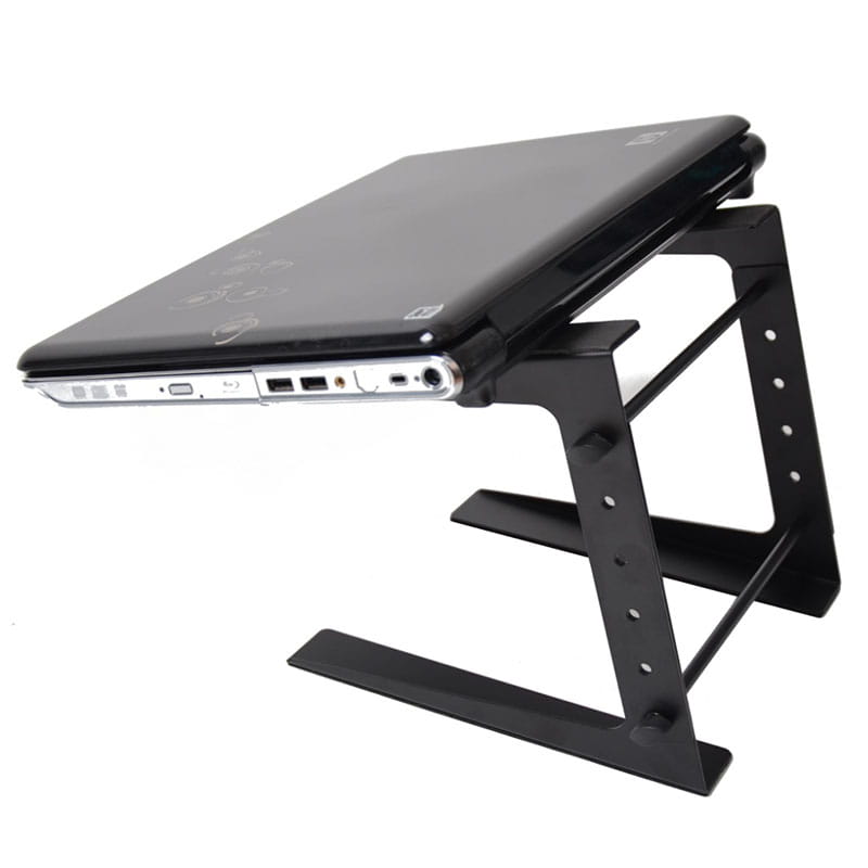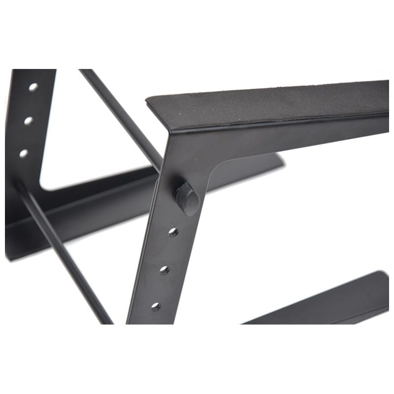 DNA LT1 to stabilny, kompaktowy statyw pod laptop, mikser dwięku, kontroler DJ, rzutnik lub innego typu urządzenie. Stojak wykonany został z 2milimetrowej stali pomalowanej proszkowo na kolor czarny, dzięki czemu jego powierzchnia jest odporna na ścieranie. Atutem statywu jest czterostopniowa regulacja wysokości w zakresie od 17cm do 32 cm.Podstawę pod laptop wyposażono w długie ramiona, które zapewniają dobrą stabilność całej konstrukcji, a dodatkowe, gumowe zakończenia zabezpieczają przez zsuwaniem się sprzętu. Stojak DNA LT1 jest również bardzo szeroki. Dzięki temu jest w stanie utrzymać nawet 17 laptop. To wygodne rozwiązanie dla każdego DJa, realizatora dźwięku, oświetlenia, a także dla zespołów muzycznych. Dzięki DNA LT1 Twój laptop stanie się integralną częścią Twojego sprzętu miksującego! Specyfikacja technicznaMateriał stalGrubość materiału 2 mmPowierzchnia malowana proszkowoKolor czarnyWysokość regulowana 17 32 cmSzerokość 23,5 cmGóra pokryta gąbką antypoślizgowąTyp do laptopów o przekątnej od 12 do 17Oryginalne opakowanie i wypełnienie.