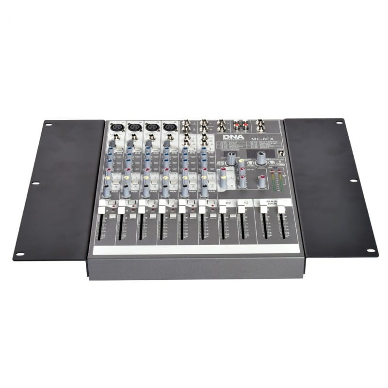 Uchwyty montaowe do miksera DNA ME8FX umożliwiają jego instalację w racku. Relingi wykonane zostały ze stali o grubości 2 mm, pomalowanej proszkowo na kolor czarny. Posiadają 2 podłużne otwory służące do przykręcenia uchwytów do miksera, oraz 3 podłużne otwory do przymocowania całości do szyn casea. Uszy rackowe do miksera DNA ME8FX lub innych mikserów o podobnych do tej konsoli rozmiarach, zapewniają bezpieczeństwo sprzętu audio podczas przechowywania i transportu. To doskonałe rozwiązanie dla zespołów muzycznych oraz mobilnych DJów, sprawdzające się zarówno w trasie i na muzycznej scenie. Specyfikacja technicznaMateriał stal o grubości 2 mmKolor czarnyOtwory po stronie miksera 2 podłużne, lekko skośneOtwory po stronie racka 3 podłużne