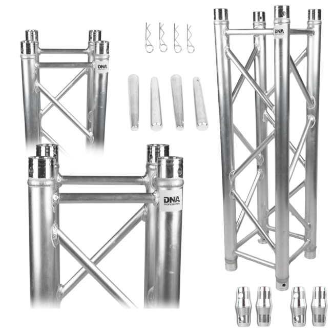 Solidna i lekka kratownica na owietlenieDNA T4 200nbsptonbspkwadratowa kratownicanbspo solidnej i wytrzymałej konstrukcji. Jest ona łatwa w montażu, stosunkowo lekka oraz mobilna. Tennbsptrawersnbspto odpowiednianbspkonstrukcjanbspprzeznaczona nanbspoświetleniowe efekty sceniczne, np.nbspminigłowice ruchome,nbspreflektory PARnbspczynbspefekty dyskotekowenbsp Jeśli szukasz dopełnienia do stanowiskanbspzespołu muzycznegonbsplubnbspDJa, tanbspkratownicanbspbędzie doskonałym wyborem.W zestawie kratownica oświetleniowa DNA T4 200, 4 sworznie, 4 trzpienie, 4 zawleczki.nbsp Trwałość konstrukcji, wygoda użytkowania oraz mobilnośćMasz dosyć dźwigania ciężkich i nieporęcznychnbspkonstrukcji nbspChcesz zachować najwyższąnbspstabilność, ale zależy Ci roewnież nanbspwygodzie użytkowanianbspinbspmobilności nbspTrawersnbspDNA T4 200nbspzostał zaprojektowany tak, aby zminimalizować jego wagę przy jednoczesnym zachowaniunbspsolidnościnbspinbspudźwigu aż do 1300 kgnbspnbsp Stabilny układ rur z lekkiego aluminiumKratownicanbspDNA T4 200nbspskłada się z dwoech rodzajoew rur wnbspukładzie kwadratowym. Rury głoewne o średnicach 50 mm i grubości 2 mm stanowią trzony konstrukcyjne, a rury wspornikoew o średnicy 20 mm i grubości 2 mm dopełniają całośćnbsptrawersu. Materiał konstrukcyjny stworzony z aluminium w kolorze srebrnym zapewnianbspestetykę oraz solidnośćnbspprzy zachowaniunbspniskiej waginbspnbspnbspKratownica oświetleniowa dla zespołu, DJa lub na małą scenęKratownica oświetleniowanbspDNA T4 200nbspto idealne rozwiązanie dlanbspzespołoew muzycznych, mobilnychnbspDJoewnbsporaznbspfirm eventowych. Doskonale nadaje się roewnież do dopełnienianbspwyposażenia scenicznegonbspw pubach i niewielkich klubach nbspSpecyfikacja techniczna Materiał aluminium 6061T6 Maksymalne obciążenie 1300 kg Rury głoewne Oslash 50 x 2 mm Rury wspornikoewnbsp Oslash 20 x 2 mm Połączenie sworznie, trzpienie i zawleczki Kolor srebrny Wymiary kratownicy 29 x 29 x 200 cm Wymiary opakowania 32 x 32 x 203 cm Waga netto 13 kg Waga brutto 13,5 kg