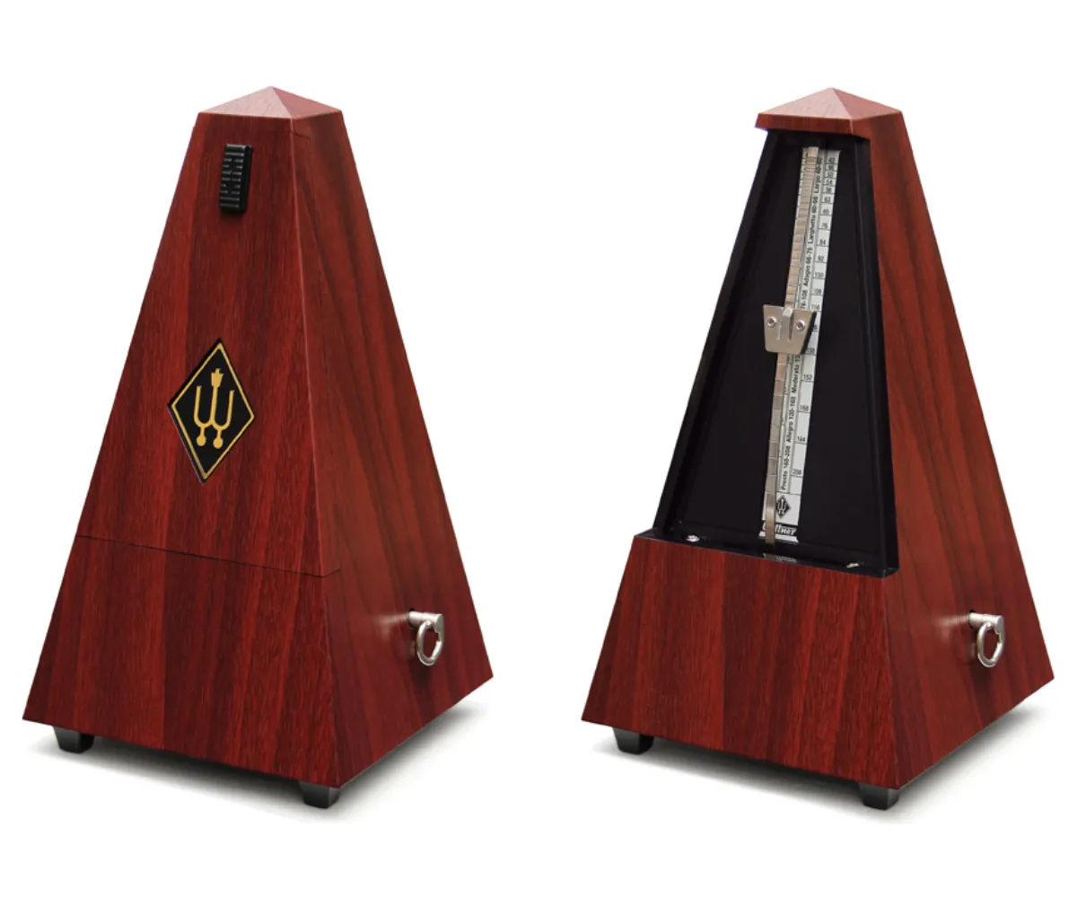 - Typ: metronom mechaniczny (nakręcany – bez baterii)